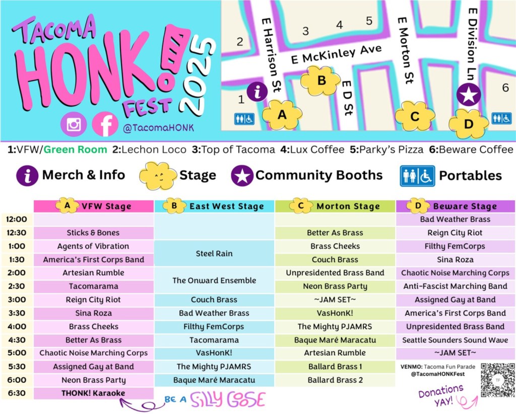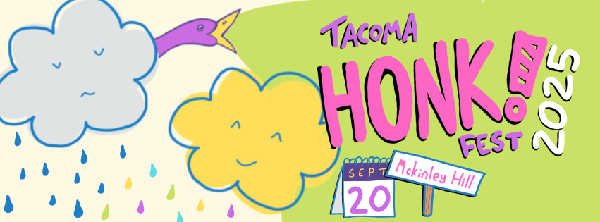 Tacoma’s third annual HONK! Fest is on September 20, 2025 in the McKinley Hill neighborhood. Bring a funky noisemaker, meet your neighbors, local musicians, and maybe even join a band!