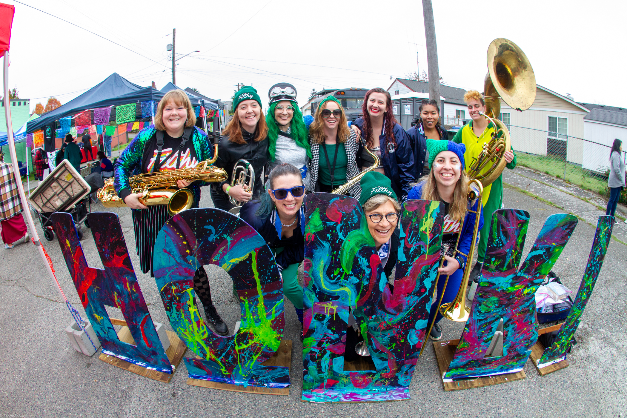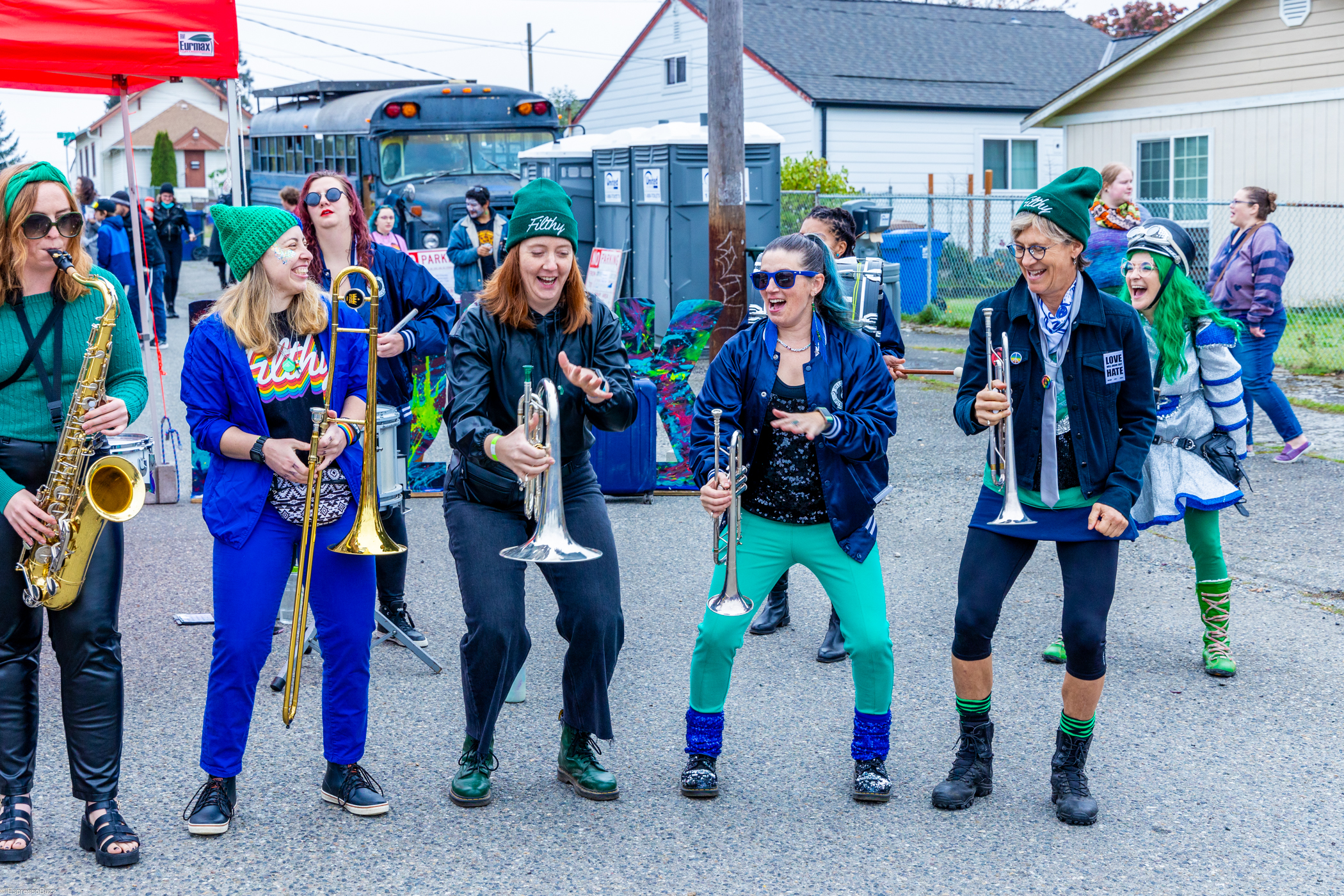 Tacomarama Community Street Band is a music ensemble that regularly performs at Tacoma-based events, including Tacoma Light Trail Parade, Tacoma Porchfest, and numerous neighborhood celebrations. They’re proud of being all ages and all inclusive. Interested in joining? Reach out to them on Facebook and Instagram @Tacomarama.